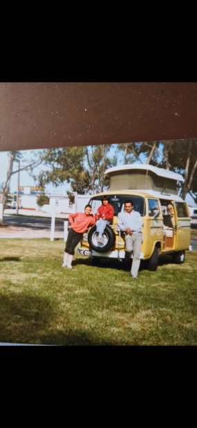 Our VW Kombi. Mum, Jimmy and Joe. Had some great road trips in that van.