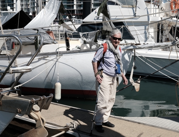 My sister Margaret (Peg) - then aged 79 standing proudly in front of her yacht SV Starlight at Breakwater Marina Townsville (Aug 2022).